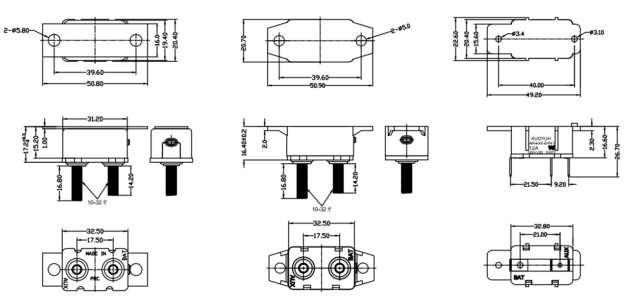 額定電流(rating):3A-60A 輸入電壓(Input Power):125VAC/250VAC/50VDC 50-60Hz 耐電壓強(qiáng)度(Withstand voltage strength):1500VAC/1min 漏電電流≤0.5mA(1500VAC/min,the leaked current is less than≤0.5mA) 絕緣電阻(Insulation Resistance):500VDC1Min≥100MΩ 額定短路能力(Rated short-circuit capacity):125VAC/1000A,250VAC/1000A 額定通斷能力(Rated breaking capacity):6倍額定電流(6 times rated current) 復(fù)位方式(reset):自動(dòng)復(fù)位(Auto Reset) 復(fù)位時(shí)間(Reset Time):60s"內(nèi)回復(fù)(Within 60s") 脫扣特性(Tripping characteristics) 測(cè)試環(huán)境溫度(The test environment temperature):25℃±3℃ 額定電流200%(200% of Ratcd Currcnt):5-40s" 內(nèi)脫扣(5-40s" Seconds Trip) 額定電流150%(150% of Rated Current):一個(gè)小時(shí)內(nèi)脫扣(Trip within 1 Hour) 額定電流100%(100% of Rated Current):保持不脫扣(Hold,No Trip)